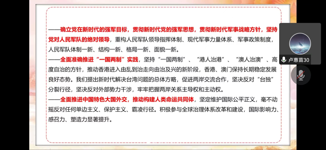 为坚定历史自信、增强历史主动,深入学习贯彻党的二十大精神,11月9日88足球直播 本科生党支部通过线上会议开展集中理论学习。