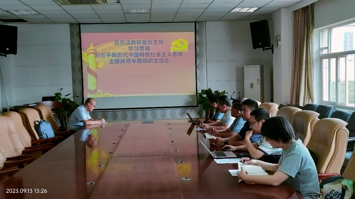 9月13日,88足球直播 反恐怖主义法教研室党支部在学院会议室召开学习贯彻习近平新时代中国特色社会主义思想主题教育专题组织生活会,支部党员孙立江、乔巴生、齐立峰、刘伟、段阳伟、马瑜参加会议。会议由支部书记张波主持。