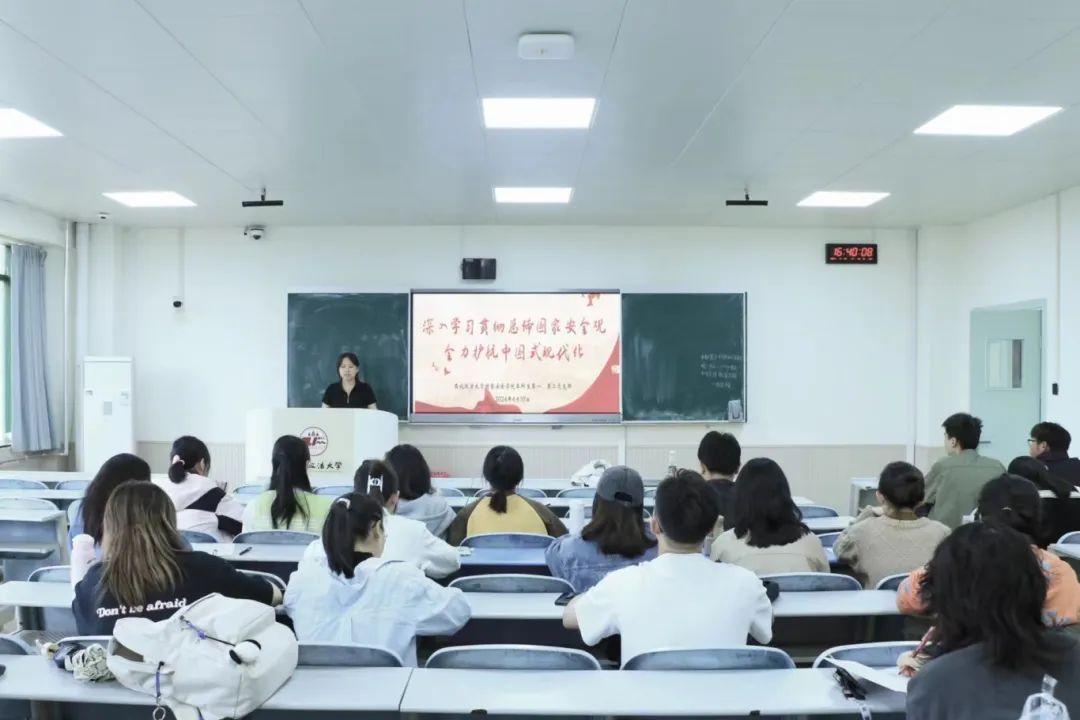 周晶晶从总体国家安全观的5个统筹、5大要素、10个坚持,国家安全观的重大意义、鲜明特征,党领导国家安全工作取得的巨大成就等方面展开详细的讲述,着重强调深入践行总体国家安全观、推进国家安全体系现代化等知识要点,带领同学们学习总体国家安全观提出十年来的理论创新。