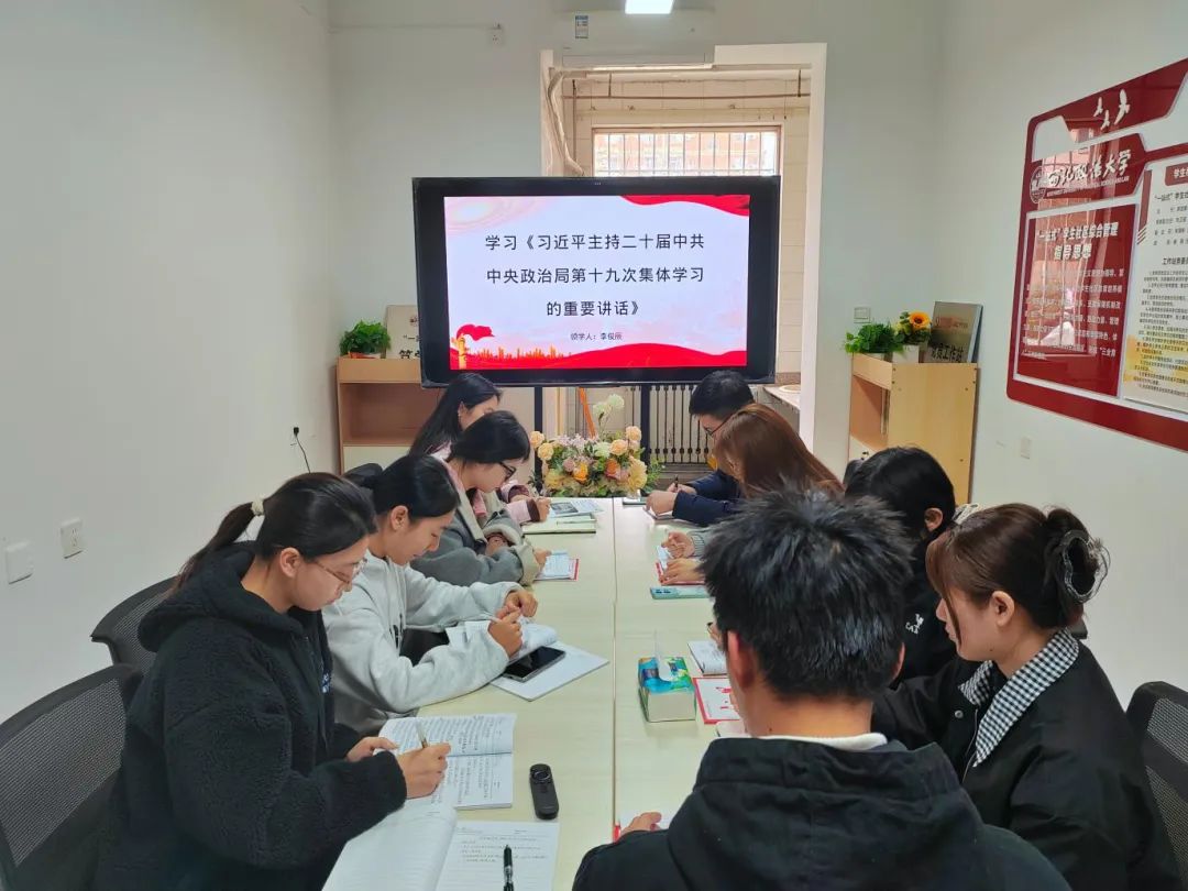 会上,由李俊辰同志领学“习近平主持二十届中共中央政治局第十九次集体学习并发表重要讲话”的相关内容,由张郴同志领学“深刻领悟习近平总书记关于‘两个仍然’的重大判断——深入学习二十届中央纪委四次全会精神”的相关内容,由杨欣怡同志领学“《求是》杂志发表习近平总书记重要文章《健全全面从严治党体系》”的相关内容。
