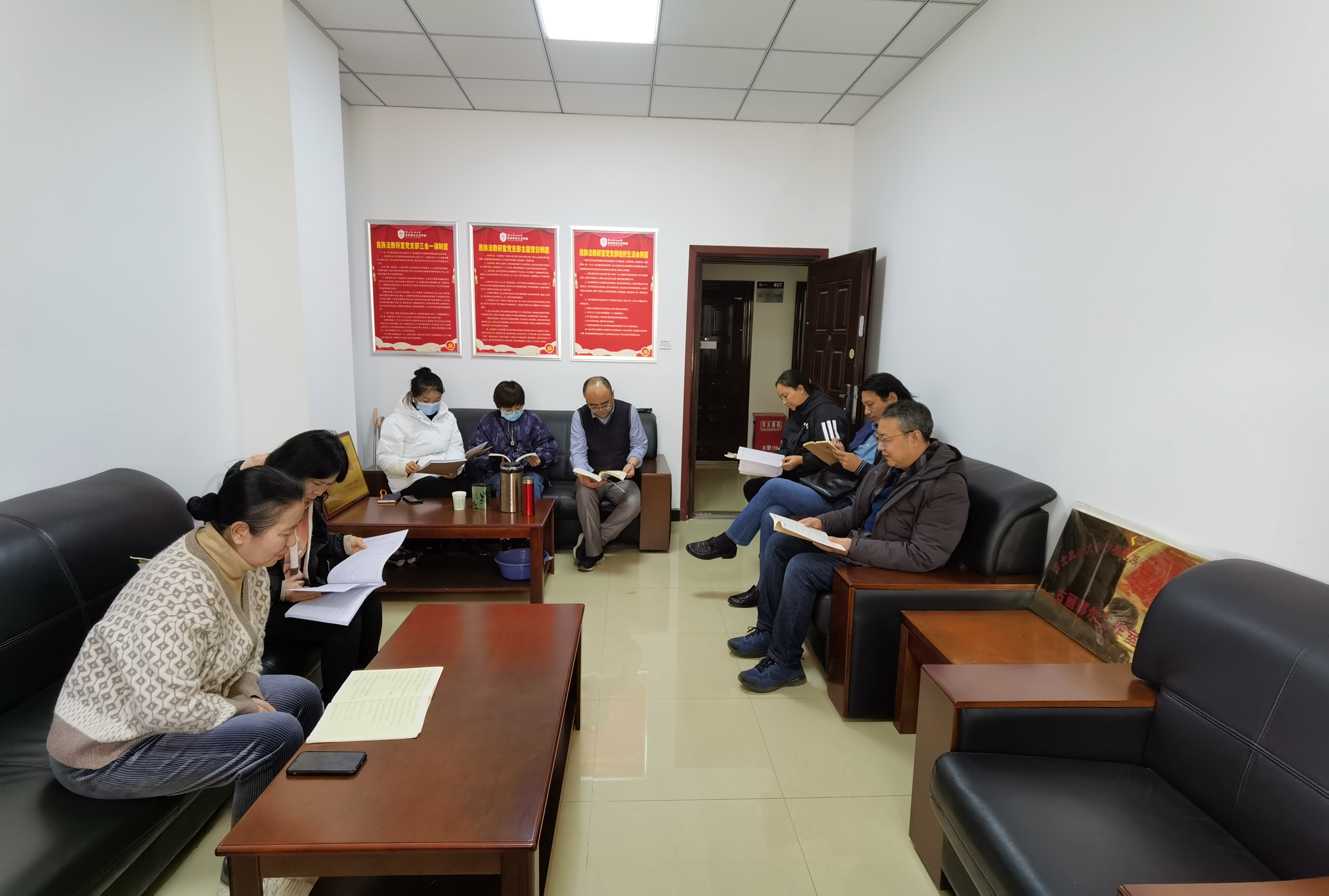 11月23日下午,民族法教研室党支部组织教研室全体教师在反恐法学院党员活动室召开支部集体学习活动,就《中共中央关于党的百年奋斗重大成就和历史经验的决议》、《习近平关于<中共中央关于党的百年奋斗重大成就和历史经验的决议>的说明》展开集体学习。