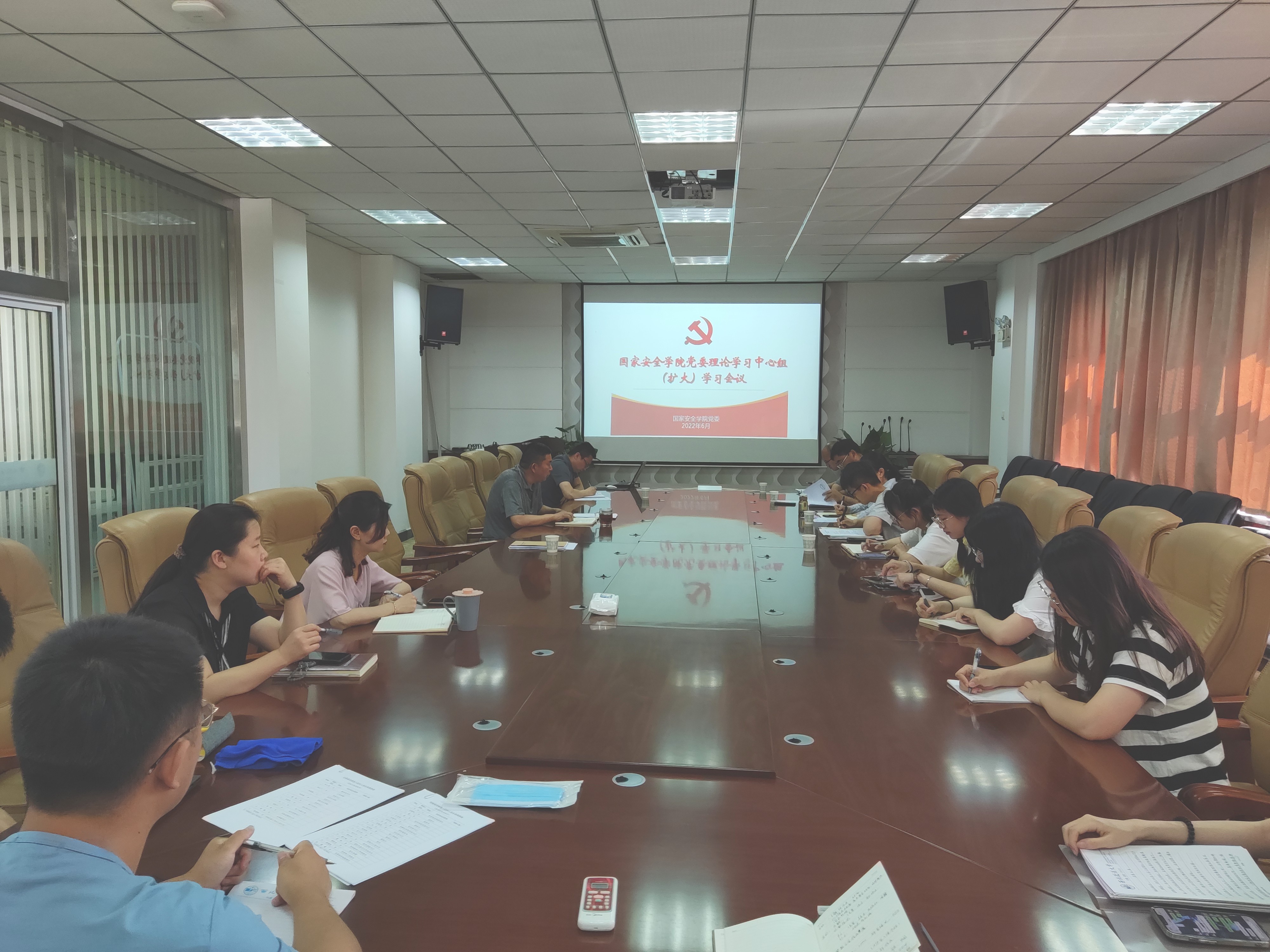 6月1日上午,国家安全学院党委理论学习中心组(扩大)组织集体学习。院领导班子、党委委员、各党支部书记和师生党员代表参加会议。会议由院党委书记李政敏主持。