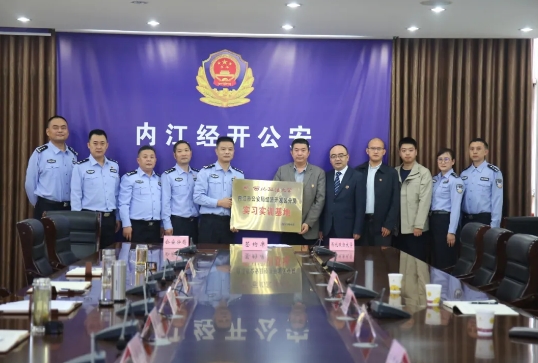 唐念、李政敏分别代表经开区公安分局和西北政法大学签署了《内江市公安局经济开发区分局 西北政法大学反恐法学院 共建协同创新战略合作关系协议》,李政敏为经开区公安分局“实践教育基地”进行了授牌。