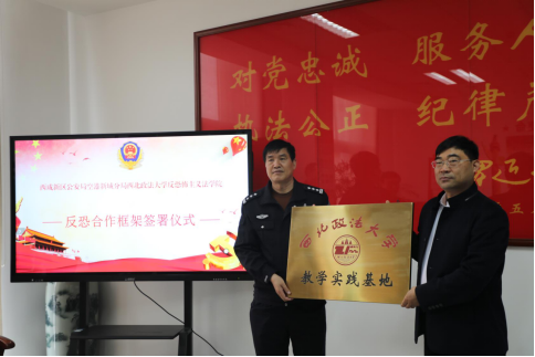 )与西咸新区公安局空港新城分局举行共建教学实践基地挂牌仪式。学院党政负责同志、教师代表,空港新城分局党政领导参加座谈并出席挂牌仪式。