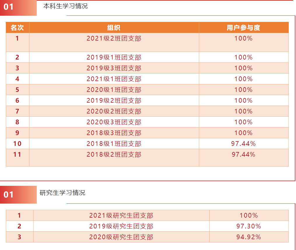 下面让我们一起来看看各班团支部网上团课的学习情况吧