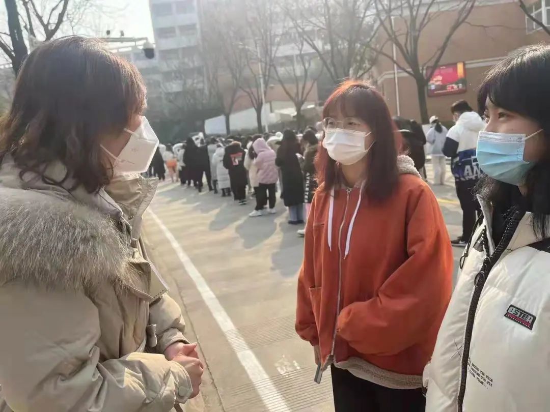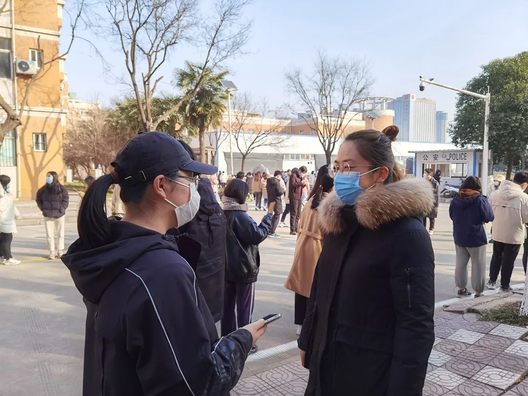 侯颖怡:是的,我也第一时间加入了志愿者团队。主要是在核酸检测时维护秩序,也幸运的做了次大白,协助医护人员核酸采样时做登记工作。第一感触就是医护人员太辛苦了,他们都是各地抽调的医护人员,有的做完核酸还要回单位继续上班。最近天气比较冷,他们每做完一个都要用酒精消毒洗手,我戴上一次性医用手套后才深切感受到每洗一次手都是刺骨的冰凉。而且他们大都是站着采样,5、6个小时下来腰酸背痛,脚都失去了知觉。我是在教师公寓区帮忙,很多老人做完都会说辛苦了,孩子们也天真的围着我们跑来跑去,每当看到这一幕我们又都会感到所有的辛苦都是值得的!只是太遗憾最近教工志愿者越来越多,每次一项任务来了大家都争先恐后,一呼百应,我也很久没有领到任务,更是抢不到大白了(笑)。
