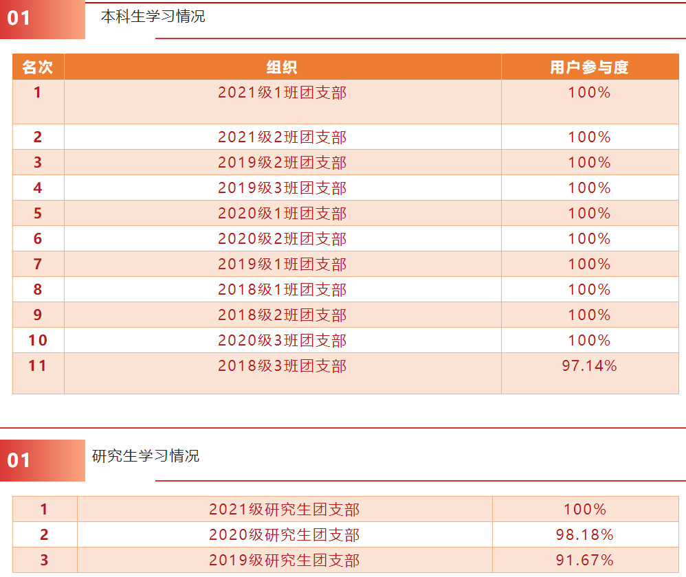 下面让我们一起来看看各班团支部网上团课的学习情况吧