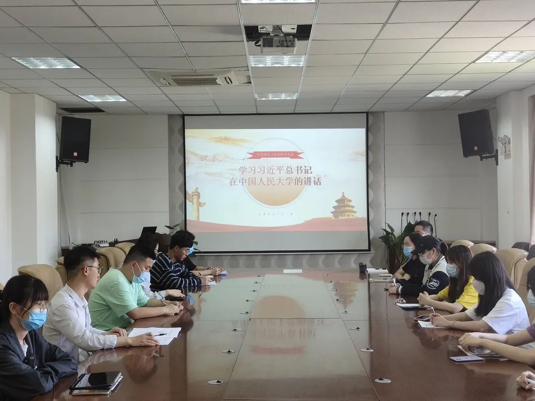 为进一步激励广大学生干部在实现中华民族伟大复兴的时代洪流中踔厉奋发、勇毅前行,提高学生会成员的思想觉悟,5月6日,反恐怖主义法学院学生会在学院会议室集体学习习近平总书记在考察中国人民大学时的重要讲话精神以及孙国华书记在西北政法大学“五四”表彰大会上的讲话,学院团委书记、辅导员杨柳、院学生会主席团及部长团成员到场参加。