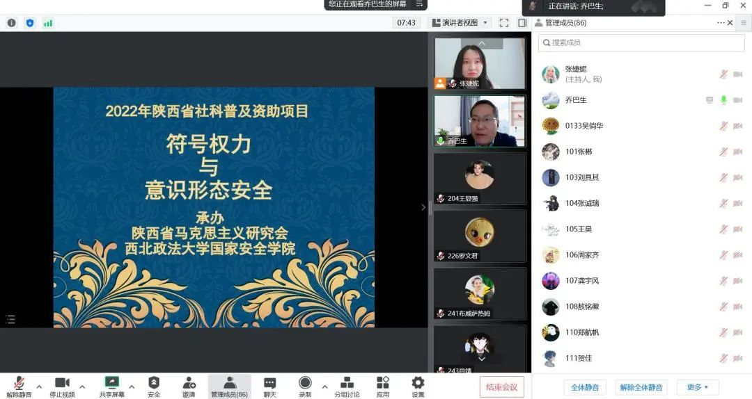 为促进新时代文化安全意识进入校园,深化2022级本科新生对符号权力构建和意识形态安全的了解,科普新时代国家文化安全知识,根据学院相关安排,88足球直播 于10月18日下午16时在腾讯会议召开民族团结进步宣传月系列活动之新时代文化安全宣讲进校园系列讲座暨新生安全教育讲座,本次讲座由88足球直播 讲师乔巴生老师主讲,2022级辅导员张婕妮老师主持,2022级全体新生参加。