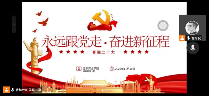 线上会议过程中,团支书曹梓仪领学了党的二十大精神后,同学们以各宿舍为单位踊跃发言讨论,分享自己的所见所闻所感,大家一致认为,青年学生要从伟大建党精神中汲取坚定的信仰力量,传承先辈的铮铮铁骨、接过先辈的精神火炬,全面贯彻习近平新时代中国特色社会主义思想,大力弘扬伟大建党精神,为实现中华民族伟大复兴的中国梦而不懈奋斗。