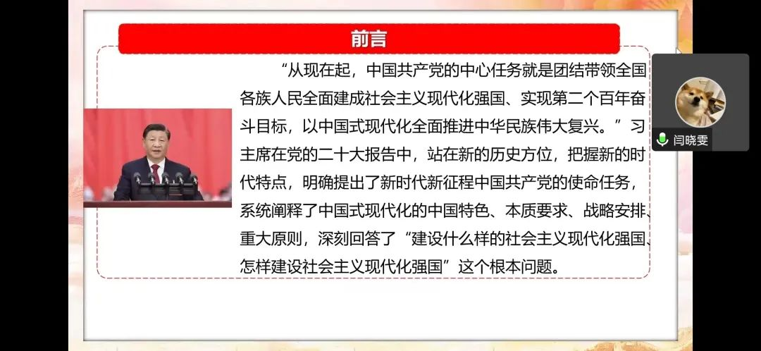 会议上,全体党员学习了关于习近平总书记在党的二十大上的报告中“新时代新征程中国共产党的使命任务”的内容。分别从中国式现代化的中国特色、本质要求和战略安排、重大原则两个部分进行深刻学习,领悟我国要“建设什么样的社会主义现代化强国、怎样建设社会主义现代化强国”这个根本问题。