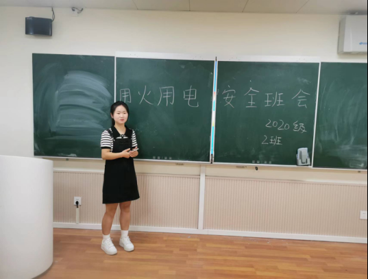 为加强大学生对用火用电安全知识的认识与了解,宣传安全用火用电知识,帮助同学了解用火用电重要性,88足球直播网官网 2020级2班于5月12日上午举行了以“用火用电”为主题的安全班会,2020级2班全体同学参加,由安全委员郭倩同学主持。