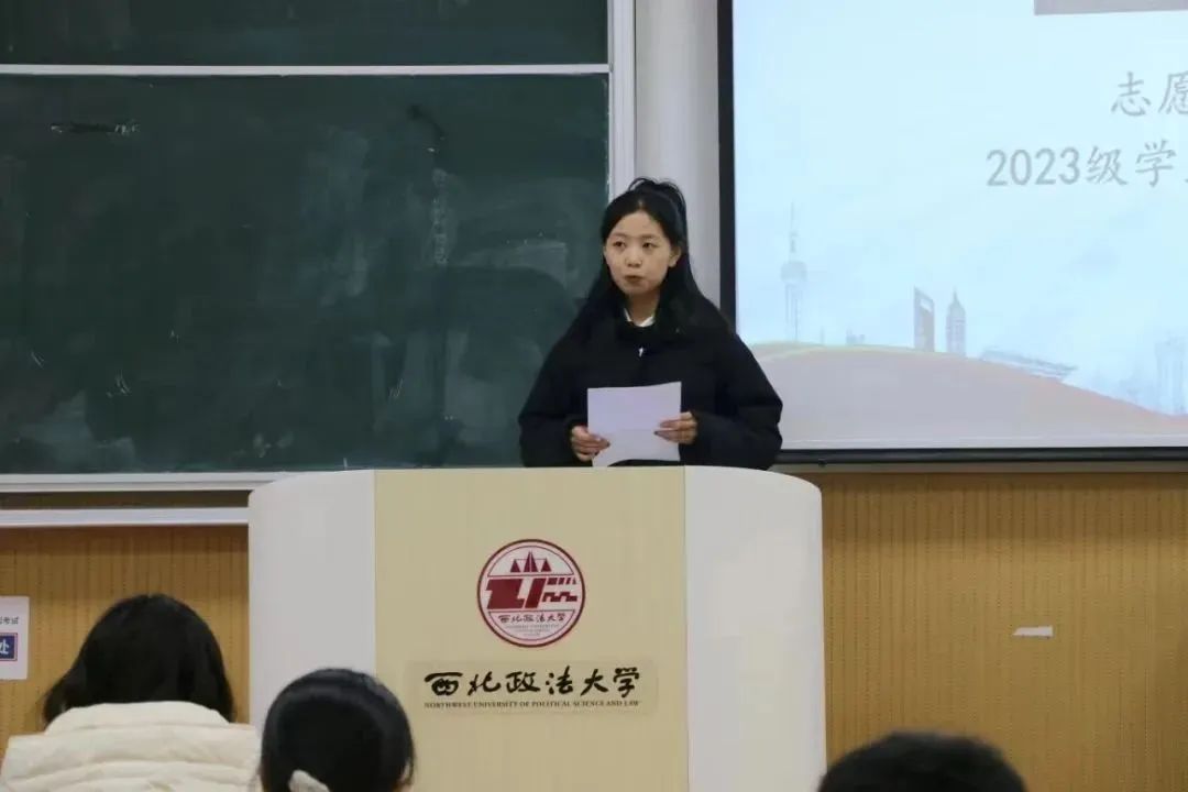 第八届学生会志愿者代表孙晓畅同学代表2023级同学分享了自己进入学生会以来的感想和经历,表达了对上一届学生会学长学姐的感谢,分享了本学期在学生会的收获和成长,并表示自己将会更积极地投入学生会各项工作,为学生会发展贡献自己的一份力量。