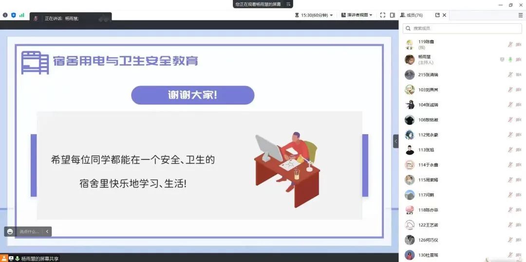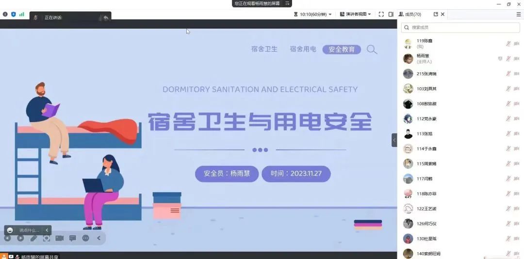 冬季干燥、用电量加大,火灾的各类诱发因素增多,极易发生安全事故。因此,做好宿舍安全工作,提高同学们安全意识刻不容缓。此次班会让同学们了解了冬季宿舍用电相关注意事项,增强了用电防火安全意识,有利于共同创造一个安全和谐的生活学习环境。