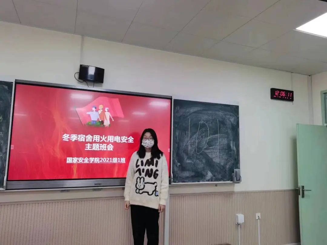 安全委员以最近发生的宿舍火灾事件着手,着重强调了安全问题的隐蔽性及其所带来的危害性,并为同学们介绍了冬季宿舍用火用电安全小知识: