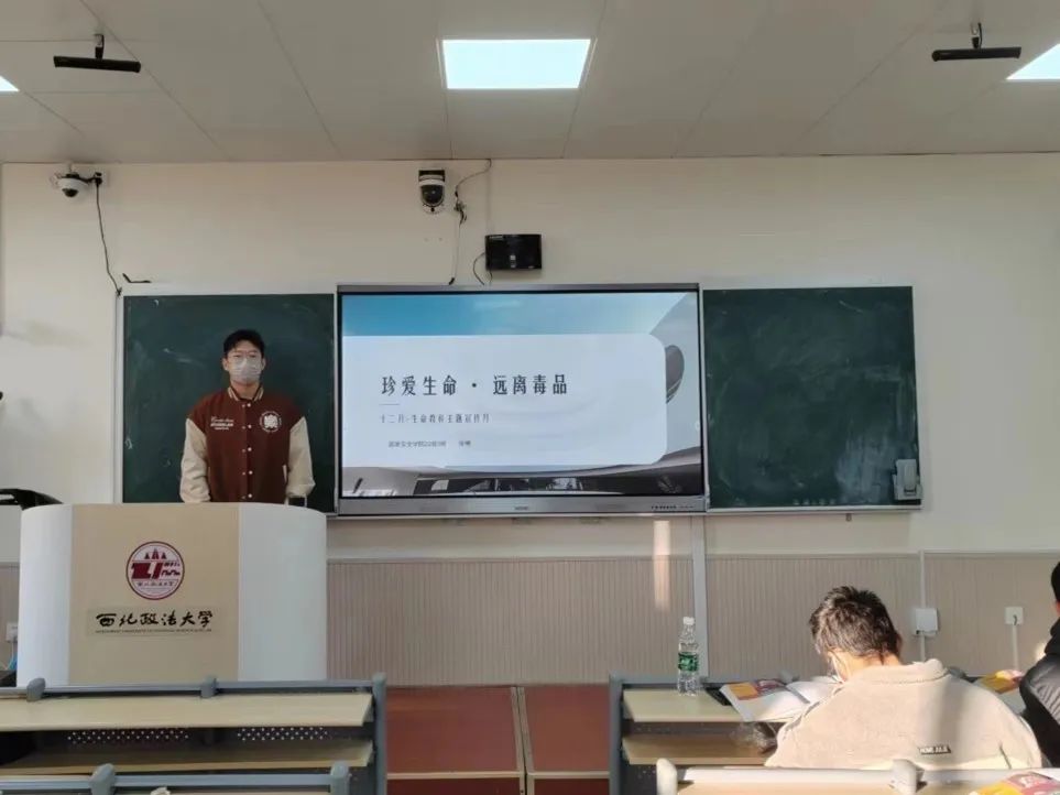 会议过程中,张郴同学从毒品的基础知识、危害性、染毒人群的迹象等三个层面切入,结合具体案例,对毒品的分类和辨别方法进行了讲解。重点解读了《陕西省实施<中华人民共和国禁毒法>办法》,帮助同学们深刻认识远离毒品的重要性,提高安全意识。