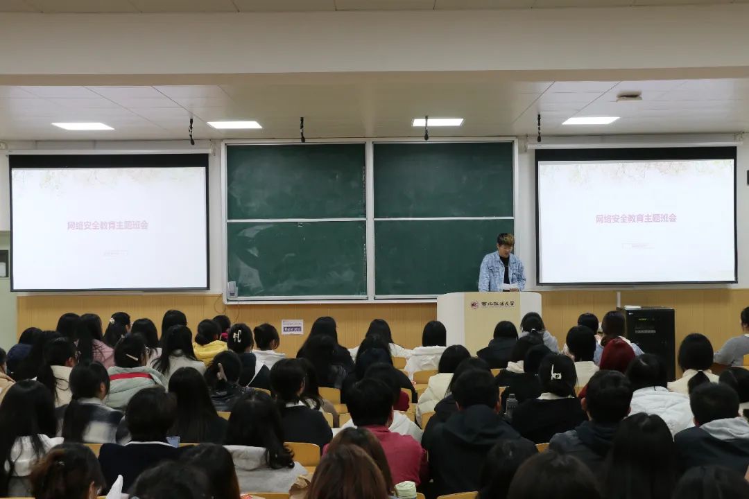 张云哲同学从网络安全背景与意义、常见网络风险及防范措施以及如何正确使用互联网三个方面展开介绍,阐明互联网是把“双刃剑”,希望同学们在享受互联网带来便利的同时,自觉抵制网络不良信息,提高防范意识,共同营造一个文明清朗的网络环境。