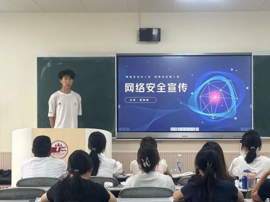 常瑞峰同学通过讲解网络安全法律法规,并结合具体事例,提醒同学们遵守网络规范,鼓励同学们积极参与网络安全宣传海报制作、网络安全文章撰写等网络安全宣传教育活动,增强对网络安全知识的掌握。