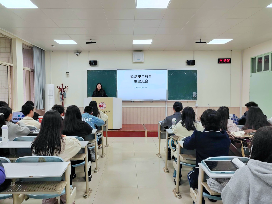 会上,同学们共同观看了消防安全警示教育片,学习正确识别潜在的火灾隐患、了解火灾发生时的应对措施。