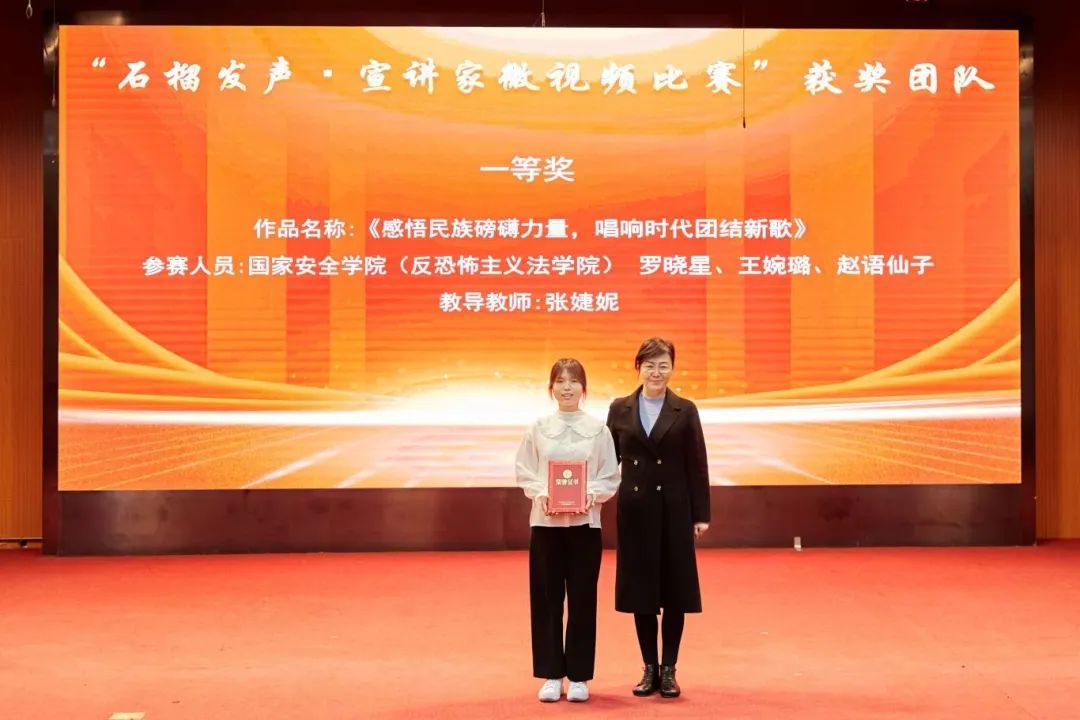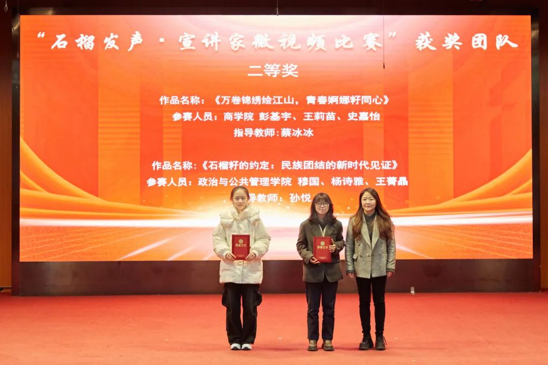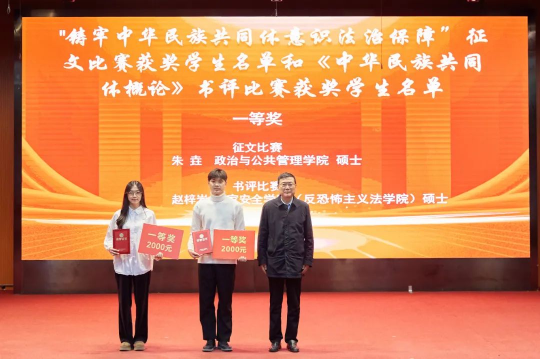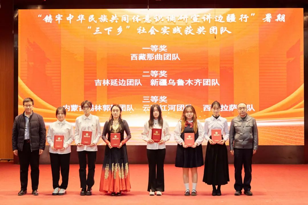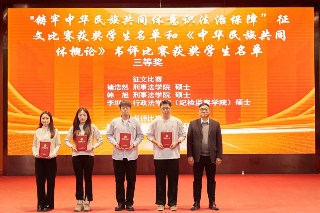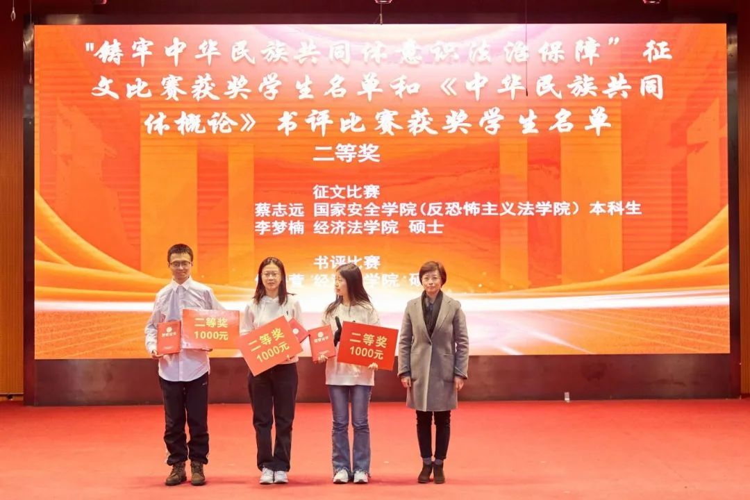 大会分别对“中华风韵”手工作品制作大赛、“56个民族,56朵花”海报作品制作大赛、“石榴发声·宣讲家”微视频、“铸牢中华民族共同体意识法治保障”征文比赛和《中华民族共同体概论》书评比赛、“铸牢中华民族共同体意识调研宣讲边疆行”暑期“三下乡”社会实践活动、“88足球直播 弘志奖学金”获奖师生进行表彰并颁奖。