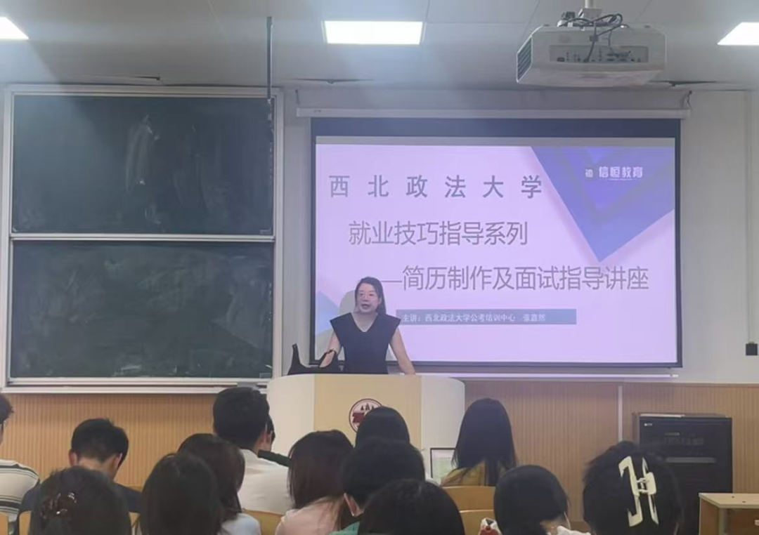 张鑫然老师深入浅出地讲解了简历制作的要点,特别强调了格式规范的重要性,并指导同学们如何制作简历,从而有效提升网申通过率。会上她还重点剖析了常见的面试类型,详细阐释了无领导小组面试的形式与特点,并分享了在各类面试中展现个人优势、脱颖而出的实用技巧。
