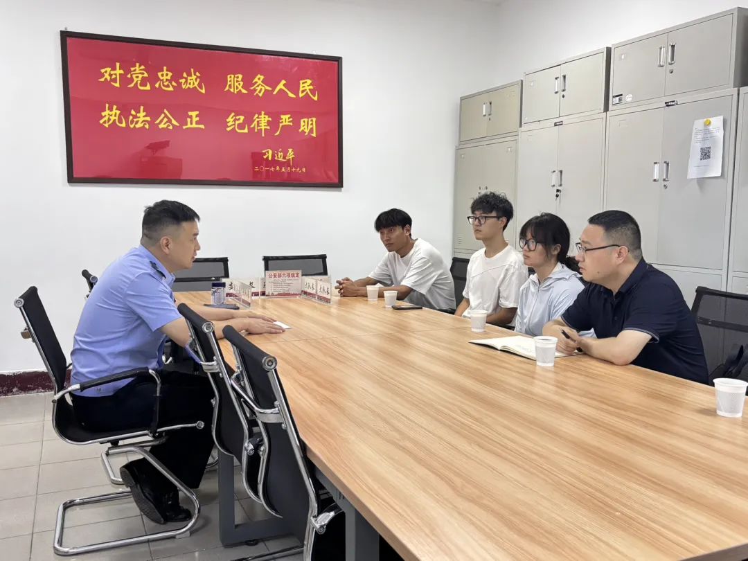 为强化学院人才培养的实践环节,培养适应社会需求的高素质应用型人才,7月8日下午,学院组织2023级本科生前往西安铁路公安局西安公安处,举行集中实习见面会。西铁公安处陈亮警官、学院院长助理段阳伟老师及学生代表参加了此次见面会。