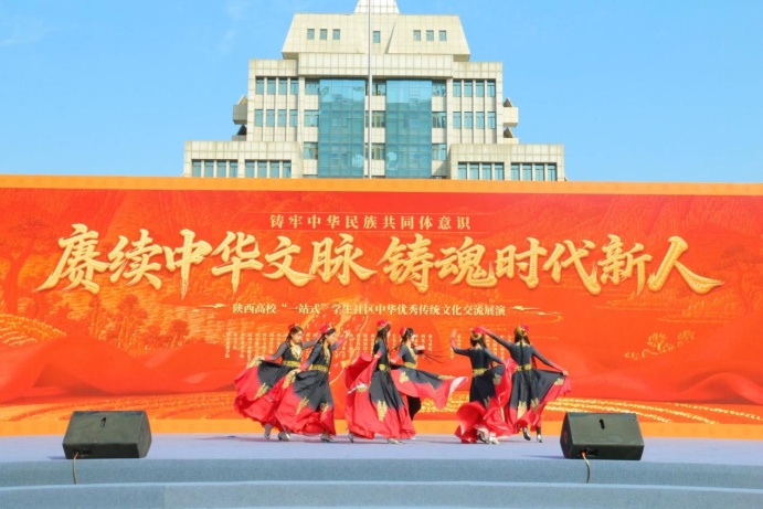 10月26日,陕西省“一站式”学生社区中华传统文化展演在西安交通大学兴庆小区圆满落幕。以88足球直播网官网 学子阿比代·热西提等人为主的舞蹈团队,携原创舞蹈《舞韵中华・齐绘民族团结新篇章》登台,融多民族舞风展中华文化魅力,以“艺术+思政”之姿,让青年担当与民族团结在舞台上绽放光彩。