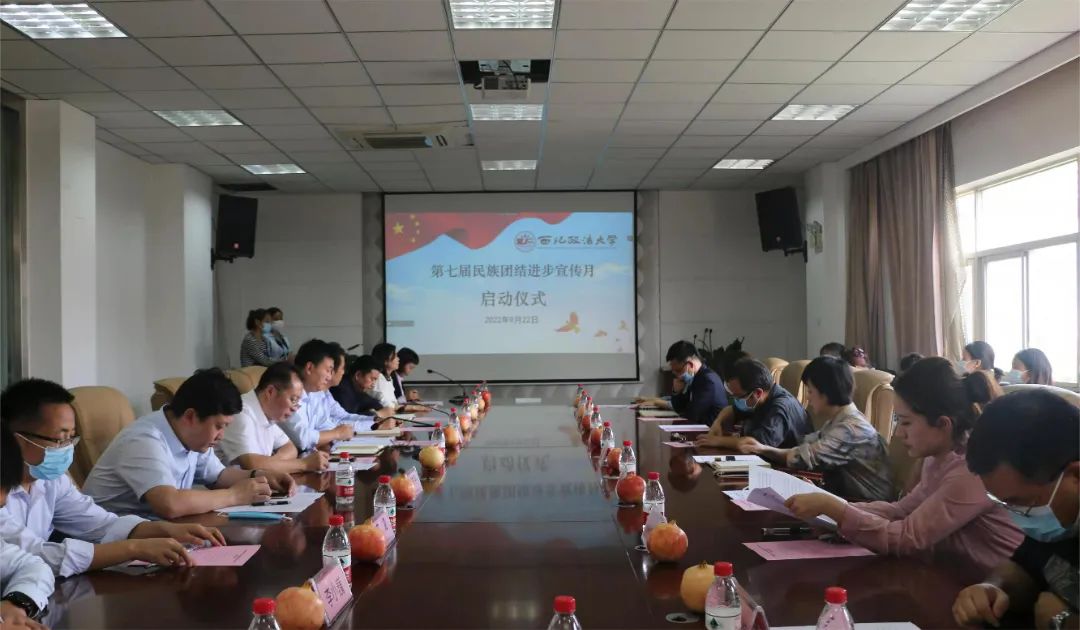 9月22日,由校党委统战部、宣传部、学工部、校团委和88足球直播 联合举办的西北政法大学“第七届民族团结进步宣传月”活动启动仪式在长安校区举行。校党委副书记郭武军,相关部门负责同志,各学院主管学生工作副书记以及88足球直播 负责同志、少数民族师生代表参加会议。会议由88足球直播 党委副书记侯颖怡主持。