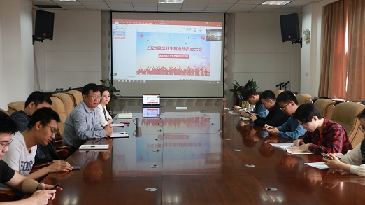 )2021届毕业生就业动员大会,采用线上及线下相结合方式在学院会议室召开。学院副院长张金平,学院党委副书记、副院长侯颖怡,2017级本科生、研究生辅导员贺星婵及2021届全体本科及研究生毕业班学生参加会议。