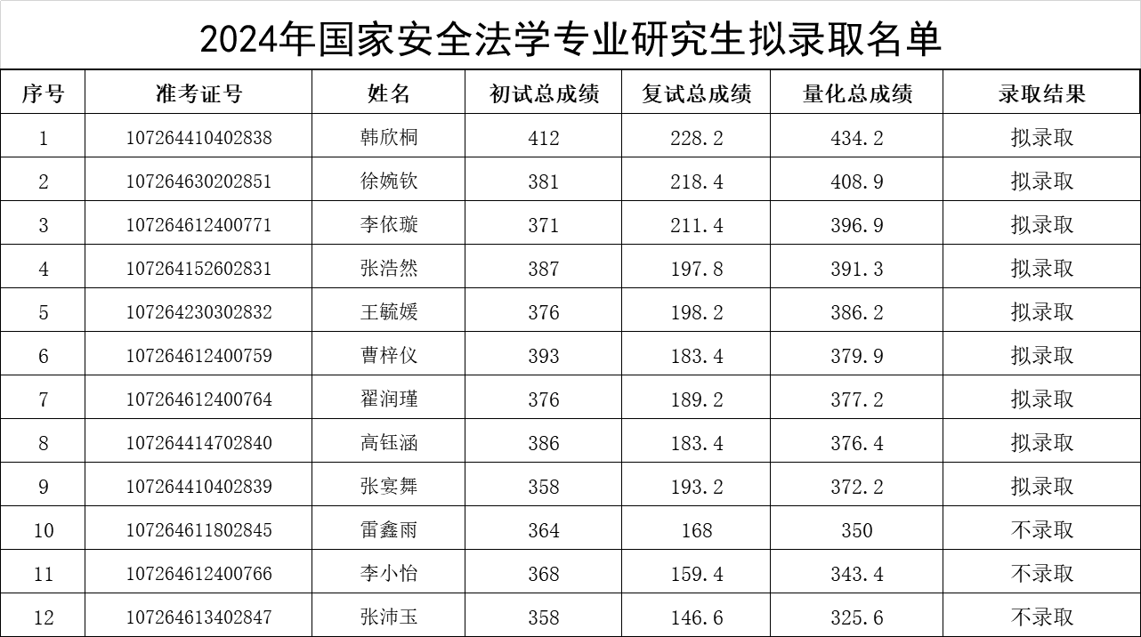 根据《西北政法大学2024年硕士研究生复试录取方案》,经学院复试领导小组评定,研究生院审核,现将88足球直播网官网 硕士研究生拟录取名单予以公示(具体名单见附件),公示期:公布之日起10个工作日。如有异议,请于公示期内以书面形式报88足球直播网官网 教务办(长安校区图书馆c座四楼405),逾期不予受理。