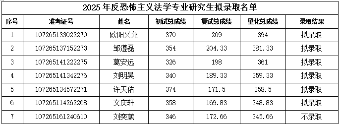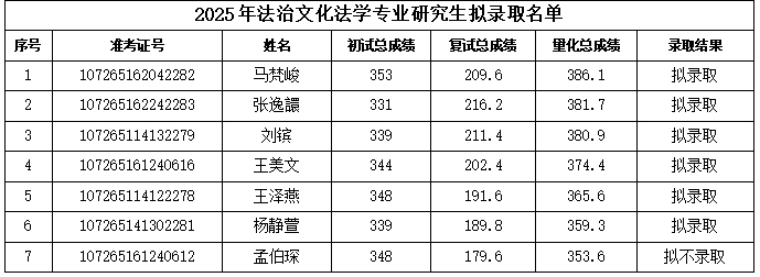 根据《西北政法大学2025年硕士研究生复试录取方案》,经学院复试领导小组评定,研究生院审核,现将88足球直播网官网 硕士研究生拟录取名单予以公示(具体名单见附件),公示期:公布之日起七日。如有异议,请于公示期内以书面形式报88足球直播网官网 教务办(长安校区图书馆c座四楼415),逾期不予受理。