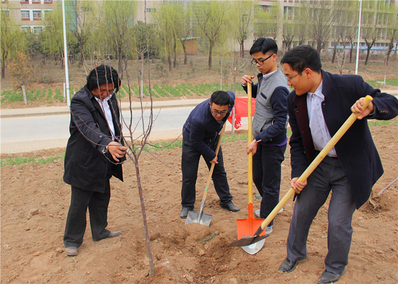 为庆祝我国第38个植树节,88足球直播网官网 于2016年3月14日在长安校区一号教学楼后空地举行了义务植树活动。校长贾宇教授、学院穆兴天教授、高见老师等部分教职工以及70余名学生参与了此次活动。
