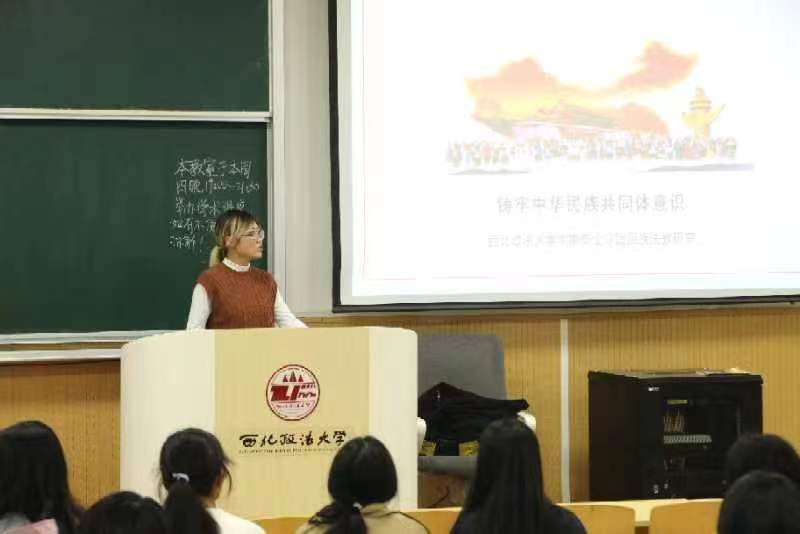 王烨老师以“铸牢中华民族共同体意识”为题,从中华民族的由来、发展和时代内涵,“中华民族的多元与一体”概念,铸牢中华民族共同体意识的重要意义三个方面,帮助学生加深对党的民族工作的理解与认识。王烨老师以通俗易懂的语言、丰富的党史案例阐释了各族人民在中华民族伟大复兴的征程中对民族团结事业发挥的重要作用。讲座内涵丰富、主题鲜明,具有很强的思想性、指导性和针对性,对全体学生准确把握和进一步铸牢中华民族共同体意识具有重要的指导意义。