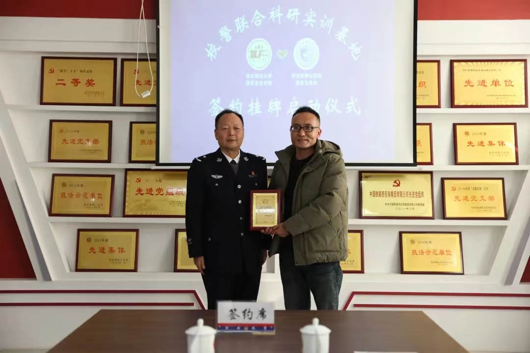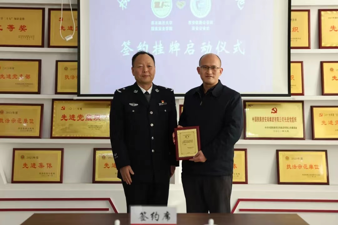 1月2日下午,88足球直播 党委书记李政敏,党委副书记、院长舒洪水,党委副书记刘卫波及88足球直播 教师一行赴西安铁路公安局西安公安处,共同举办“校警联合科研实训基地”揭幕挂牌仪式。西安铁路公安局西安公安处党委书记、处长田野,党委委员、纪委书记王军胜,党委委员、副处长王海涛及相关部门负责人参加仪式。