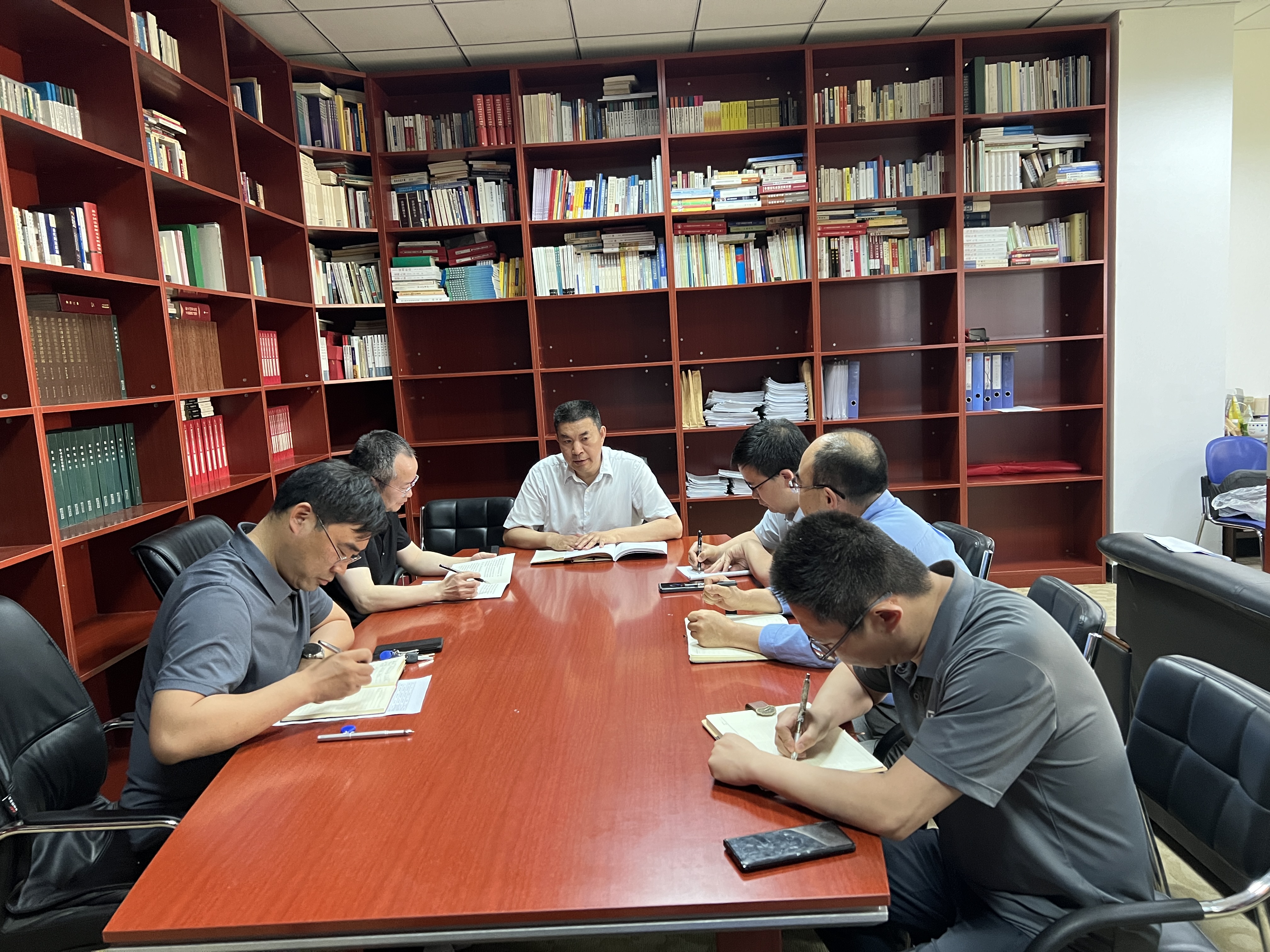 5月14日下午,88足球直播 党委召开理论学习中心组会议,对学院开展党纪学习教育进行再动员再部署,院理论中心组成员参加会议。学院党委书记李政敏主持会议。
