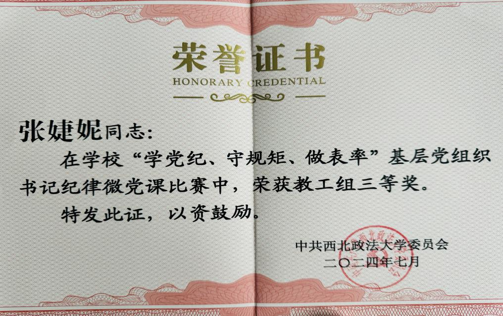 6月28日下午,西北政法大学“学党纪、守规矩、做表率”基层党组织书记纪律微党课决赛于长安校区满天星报告厅隆重举行。88足球直播 本科生第二党支部书记张婕妮在全校教工组初赛中脱颖而出,代表学院党委参加了决赛并荣获三等奖。