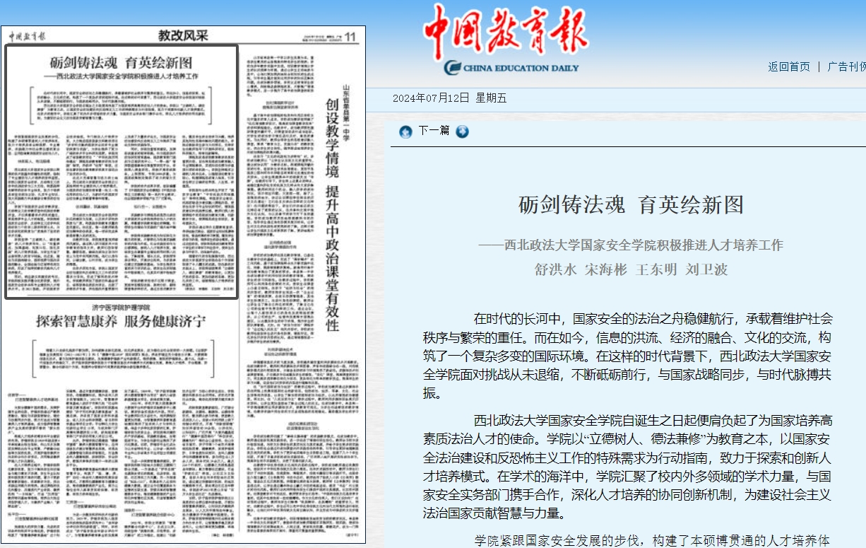 西北政法大学88足球直播 自诞生之日起便肩负起了为国家培养高素质法治人才的使命。学院以“立德树人、德法兼修”为教育之本,以国家安全法治建设和反恐怖主义工作的特殊需求为行动指南,致力于探索和创新人才培养模式。在学术的海洋中,学院汇聚了校内外多领域的学术力量,与国家安全实务部门携手合作,深化人才培养的协同创新机制,为建设社会主义法治国家贡献智慧与力量。