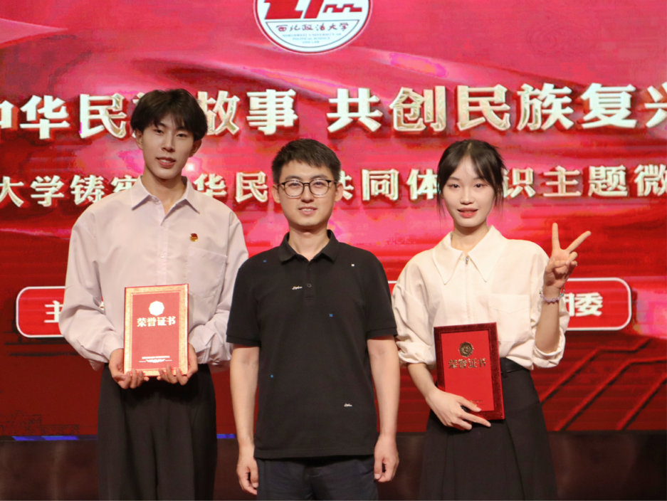 在微宣讲大赛中,常瑞峰同学以“石榴籽紧相拥,筑梦路共前行”为主题展开讲述,结合个人经历分享了民族团结故事,并引用习近平总书记话语来强调各民族要像石榴籽一样紧紧抱在一起,共同为强国建设、民族复兴而努力奋斗。吴静娴同学以“宪法联结你我他,中华民族美如画”为主题,呼吁广大青年牢记民族团结的原则,做铸牢中华民族共同体意识的践行者与促进者。两位同学感情充沛、言真意切,经过激烈角逐与评委老师综合评审,吴静娴同学荣获一等奖,常瑞峰同学荣获三等奖。