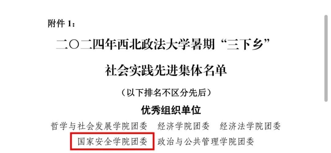 陈玉洁等10名同学荣获二〇二四年西北政法大学暑期“三下乡”社会实践先进个人。