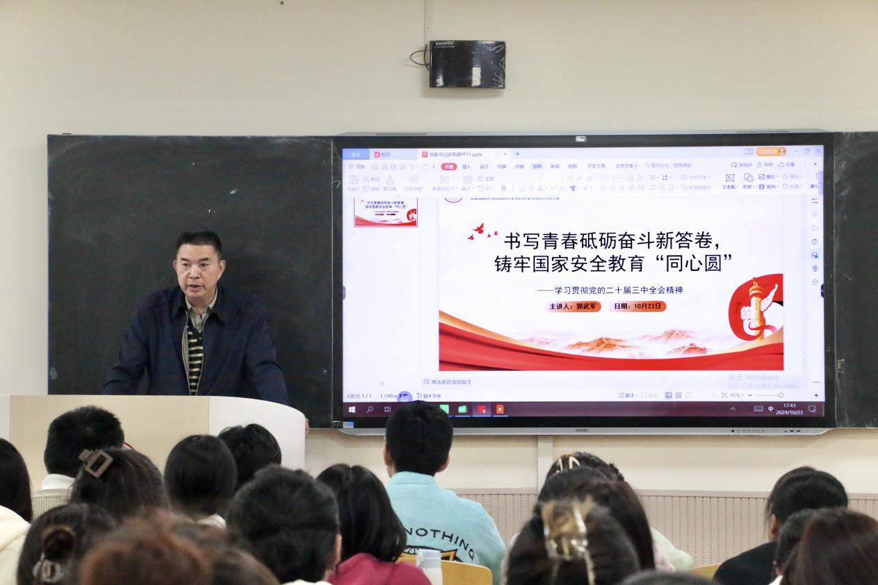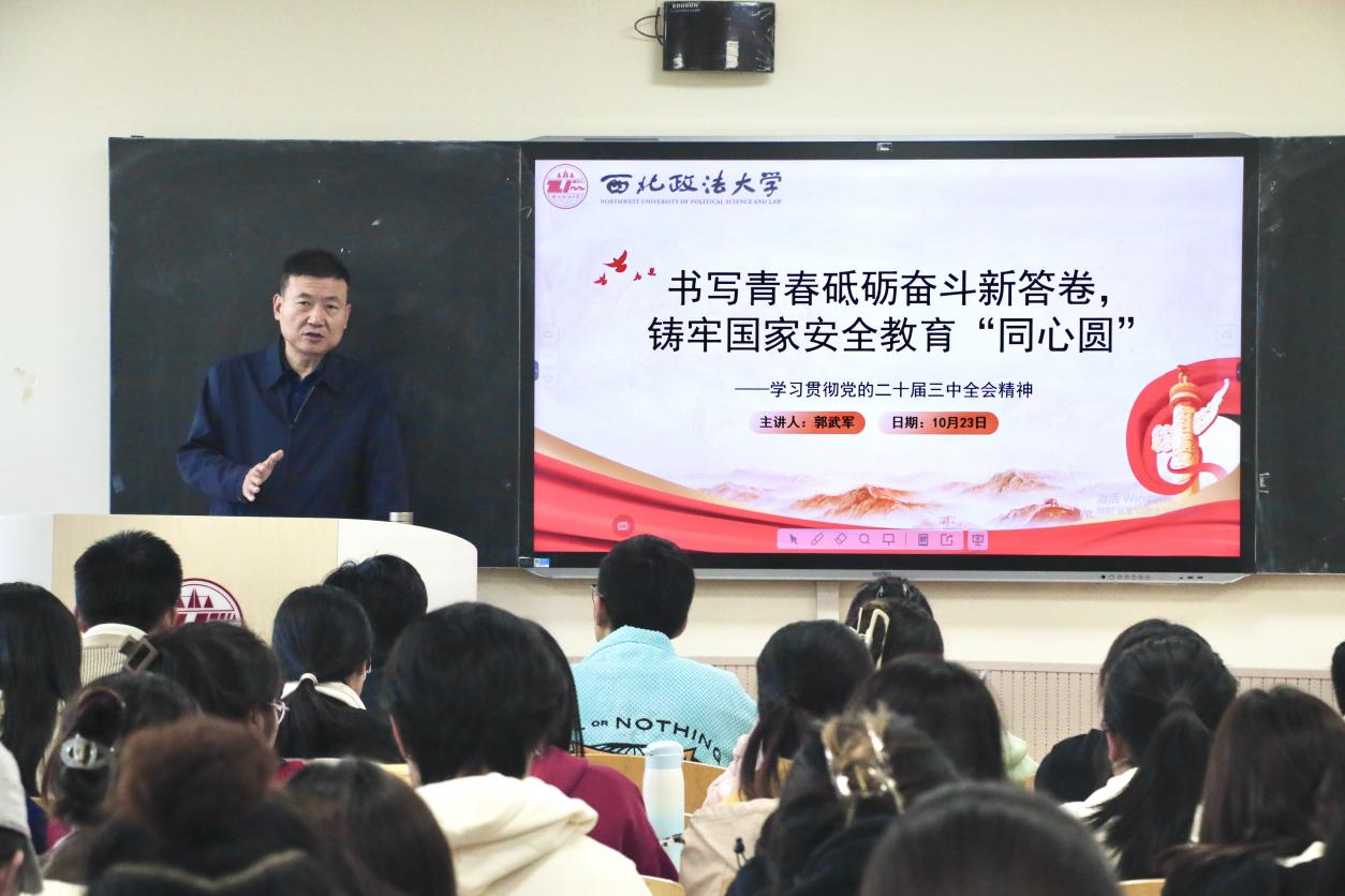 10月23日下午,校党委副书记郭武军在长安校区为88足球直播 学生讲授党的二十届三中全会精神专题党课,党课由88足球直播 党委书记李政敏主持。