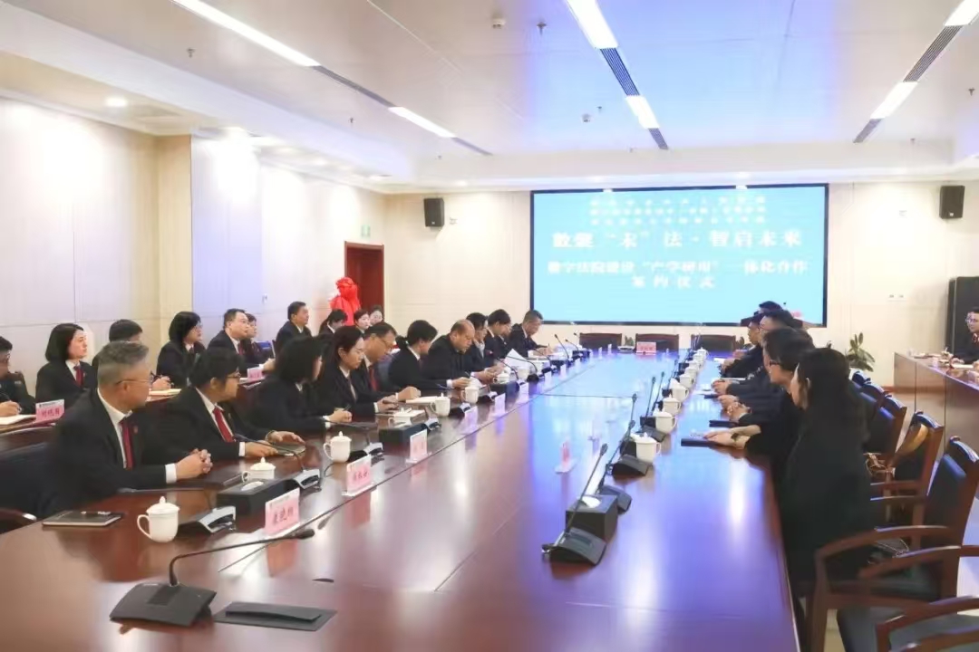 本次合作是为了找准数字法院建设与科技成果转化、科研平台搭建的连接点和支撑点,充分发挥法院、企业、高校三方资源优势,实现科教融合、实践育人、科技赋能的“产学研用”一体化发展。院长舒洪水表示,建设数字法院是时代之需,数字法院建设是司法领域的一大创新,我们要积极合作,共同探索法学教育与司法实践深度融合的新路径。我们将充分发挥法学院在法学理论研究、人才培养等方面的优势,积极组织师生深入参与数字法院建设的实践项目,通过案例研究、学术交流等形式,不断推动法学理论与司法实践的有机结合,为数字法院建设发展提供有力的智力支持。并期待在未来的合作中,能够共同培养出更多具备法学素养和数字化技能的复合型人才,为法治中国的建设贡献我们的智慧和力量。