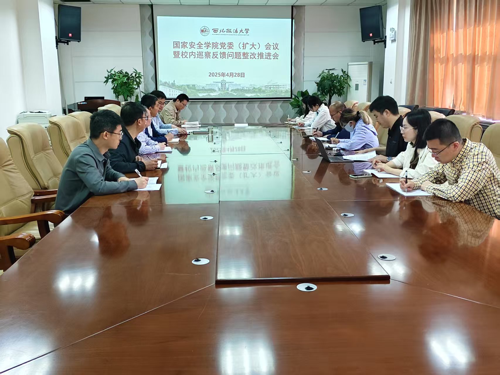 会议学习了习近平总书记在中央周边工作会议上、在中共中央政治局第二十次集体学习时发表的重要讲话精神,学习了《习近平关于加强党的作风建设论述摘编》部分章节,传达学习《中共西北政法大学委员会关于整治形式主义的若干举措》文件精神。会议通报了学院校内巡察反馈问题整改工作的整体推进情况,并对巡察反馈问题整改台账、整改时限进行了说明,再次强调了巡察整改工作的极端重要性与紧迫性。