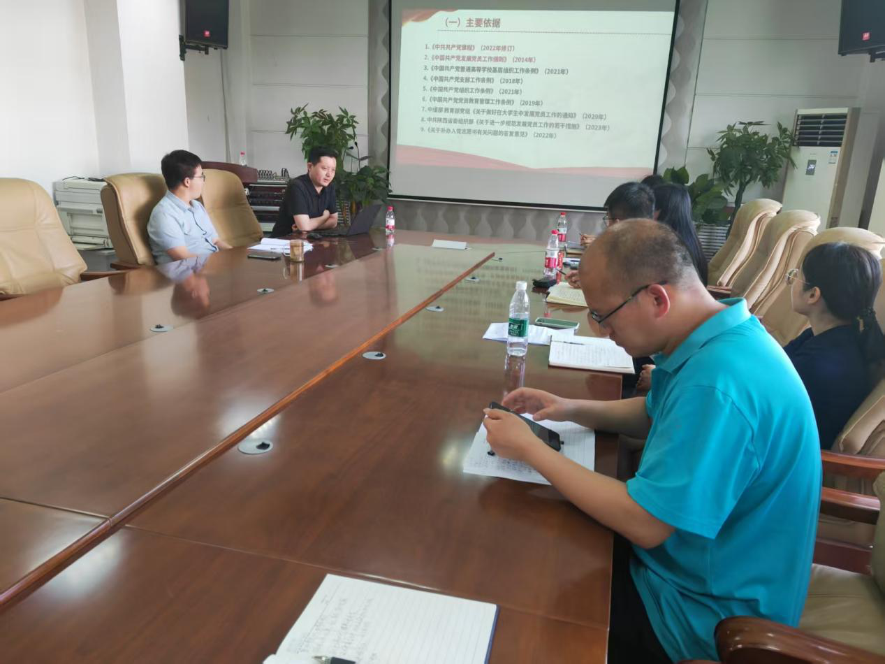 会上,樊丁结合学校基层党建工作实际,重点讲解了发展党员规范流程、高校毕业生组织关系管理、党支部标准化规范化建设、党费收缴与管理、党建“双创”工作等内容。在现场交流环节,与会人员围绕“学院党建工作与中心工作结合”“党员日常教育管理”等问题进行了讨论交流。