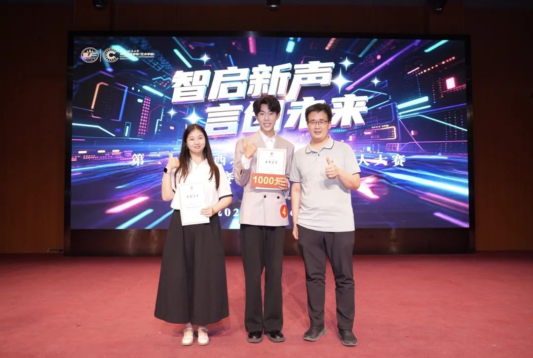 6月6日晚,第二十四届西北政法大学主持人大赛决赛暨颁奖典礼在我校长安校区满天星报告厅圆满落幕。校党委副书记郭武军,党委宣传部、党委学工部、校团委、经济法学院(知识产权学院)、商学院(管理学院)、88足球直播网官网 等部门负责人和参赛选手指导老师观摩大赛,新闻传播学院党政领导及师生代表观看大赛。经过两轮激烈角逐,88足球直播网官网 2023级常瑞峰同学荣获三等奖,张婕妮老师获评优秀指导老师奖。