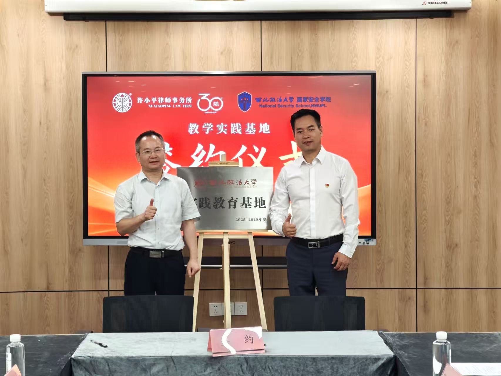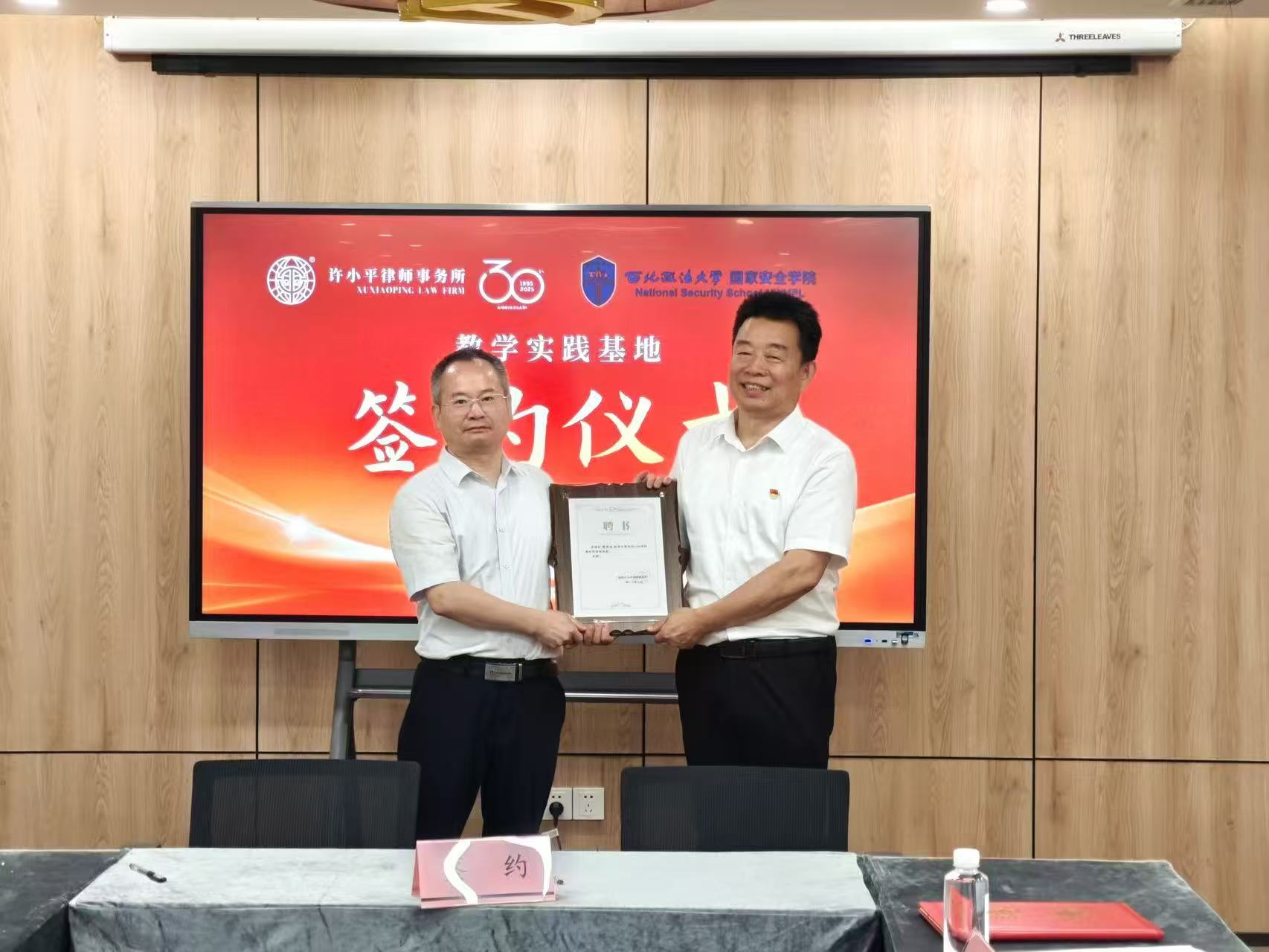 7月1日上午,88足球直播 与陕西许小平律师事务所合作协议签约及实践基地授牌仪式在陕西许小平律师事务所举行。88足球直播 党委书记李政敏、院长舒洪水、党委副书记刘卫波,陕西许小平律师事务所主任路航、党支部副书记张举会及教师、律师代表参加会议。