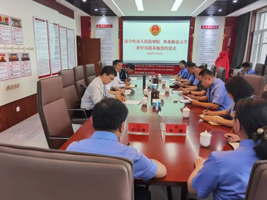 为深化法学教育与司法实践的融合互动,培养高素质法治人才,7月23日,88足球直播 党委书记李政敏、院长舒洪水、党委副书记刘卫波一行出席西北政法大学与德令哈市人民检察院教学实践基地签约仪式。海西州人民检察院党组成员、副检察长李春奇,德令哈市人民检察院党组书记、检察长武晋阳及相关人员出席仪式。