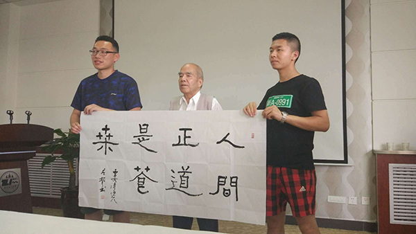 座谈会上,张逸先生将自己多年来潜心探索研究的《张逸左腕书法》、《书学逸墨》等书法理论作品赠与参会学生。反恐法学院学生邹成杰、李开兴等分别提出了自己在学习书法中的疑惑,张逸先生逐一耐心解答。座谈会结束后,几位书法家现场为同学们一展书法风采,并赐笔墨留念。书法交流阶段,各位书法家现场泼墨,向同学们赠送了“为人民服务”、“位卑未敢忘忧国”、“人间正道是沧桑”等30余幅励志书法作品。