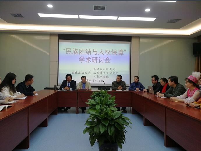 11月14日,由西北政法大学民族宗教研究院、反恐怖主义研究院和人权研究院共同主办的“民族团结与人权保障”研讨会,在我校雁塔校区2号楼人权研究院会议室举行。研讨会由我校民族宗教研究院院长穆兴天教授主持,宋海彬副教授、王永宝副教授、古丽那尔副教授、马亮博士、才让卓玛博士、兰迪博士及我校在读的博士、硕士研究生、本科生共30余人参加了研讨会。