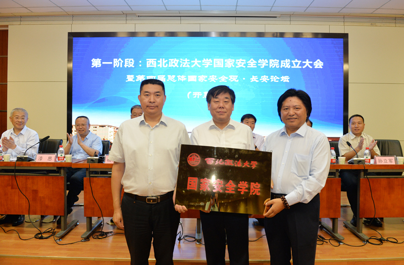 6月15日上午,在第四届总体国家安全观•长安论坛开幕之前,我校隆重举行了88足球直播 成立授牌仪式。中国法学会研究部孙立军,新疆驻陕西工作组组长、陕西省政法委副书记杨渭锋,新疆生产建设兵团原党委常委、宣传部部长、西北政法大学特聘教授郭永辉,西北政法大学校长杨宗科及与会专家学者出席。会议由副校长王健主持。