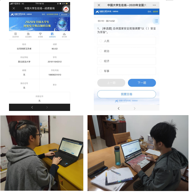 根据学校全民国家安全教育日活动安排,学院积极组织学生在中国大学生在线、易班、国家开放大学网站错峰错时观看学习《全国大学生同上一堂国家安全教育课》,充分利用线教育教学资源,拓展学生学习的途径。同时,还组织学生参加学校“国家安全教育主题讲座”及全国大学生国家安全教育知识竞赛,增强学生学习的主动性,巩固学院国家安全教育的成果,深入推进学生国家安全知识入脑入心。